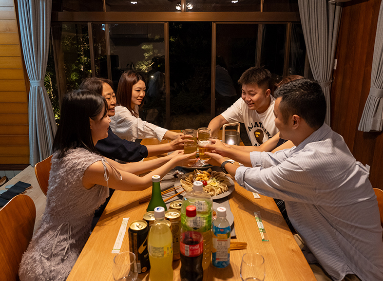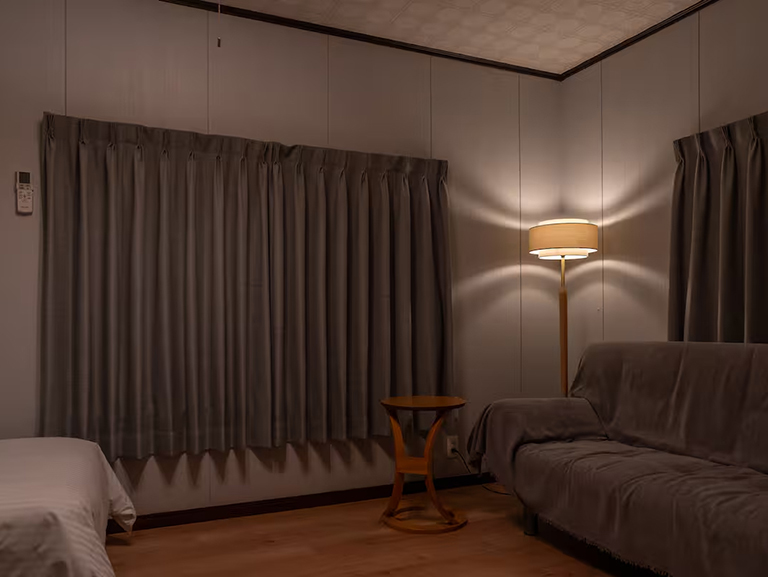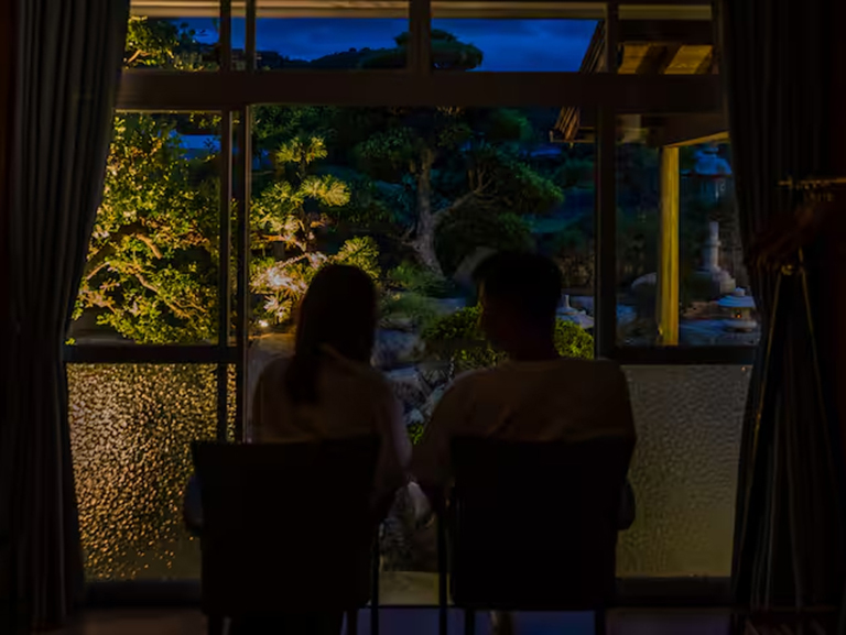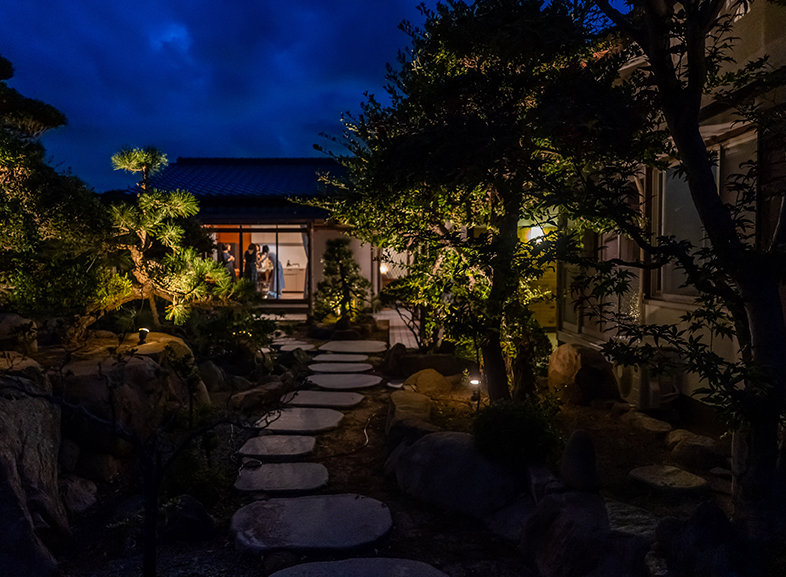 We have transformed this "Shushitsu"—a space where you can enjoy the peaceful scenery by day, the magical